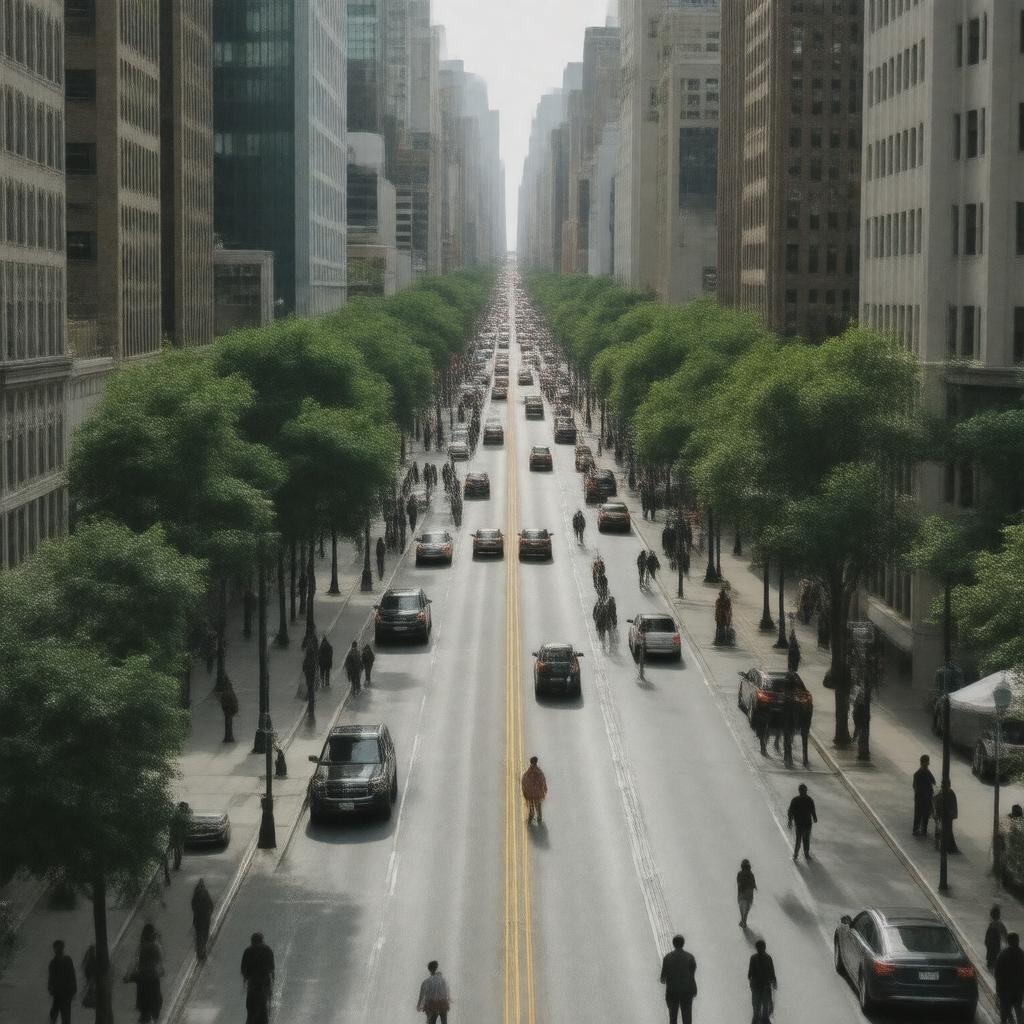 "Generate an image of a bustling urban street, depicting 22nd Street in a typical North American city, with tall buildings, cars, and pedestrians, in a realistic style."