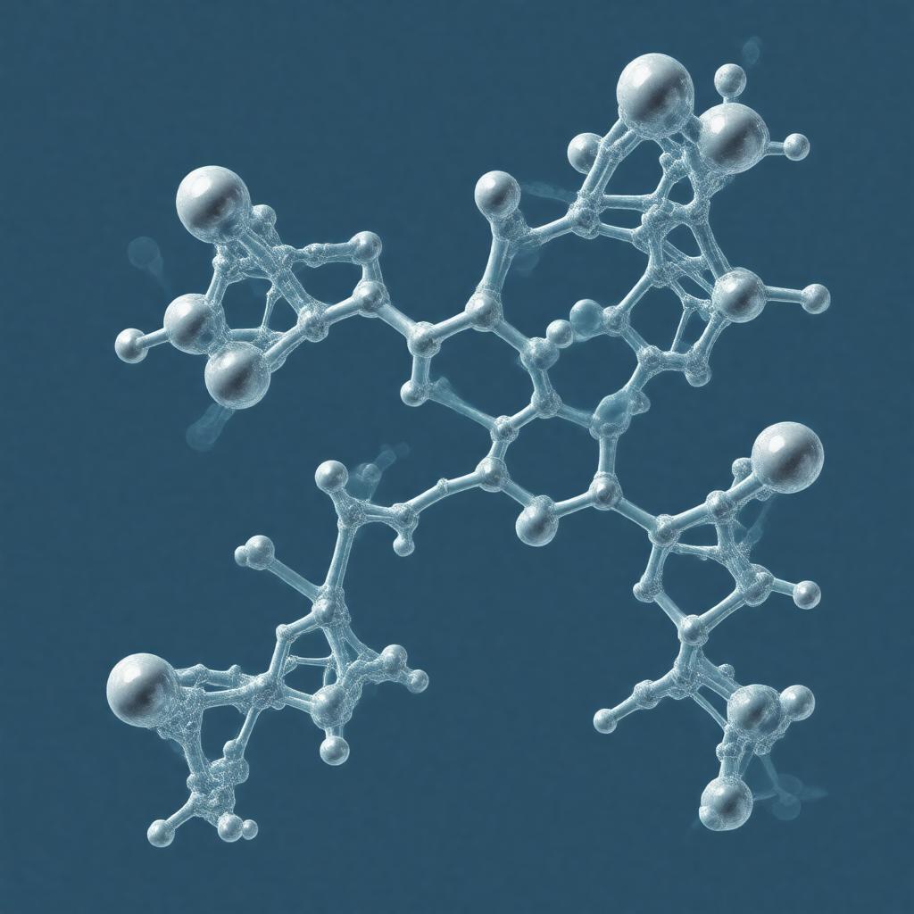 Generate an image of a molecular structure representing Angiotensin-converting enzyme (ACE), depicted in a scientific illustration style with a clean and minimalist aesthetic, featuring a ribbon diagram or a ball-and-stick model of the enzyme's protein structure.