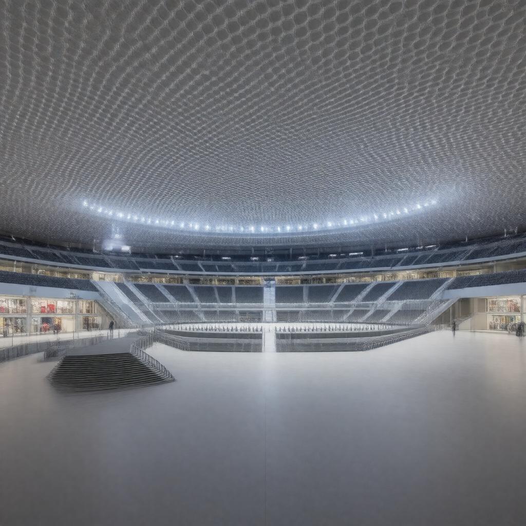 "Generate a realistic image of the Accor Arena, an indoor arena located at 8 Boulevard de Bercy, 75012 Paris, France, with a modern architectural style, showcasing its exterior at night with vibrant lighting, surrounded by the cityscape of Paris."