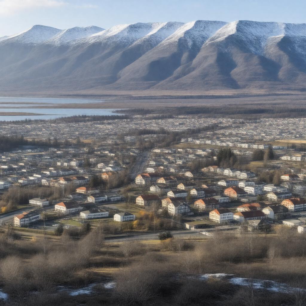 "Generate a realistic image of Akureyri, a town located on the shores of Eyjafjörður in the Northeastern Region of Iceland, showcasing its scenic surroundings and notable landmarks such as Akureyrarkirkja and the Botanical Garden of Akureyri, with a style that reflects its subarctic climate and nickname as the 'Capital of North Iceland'."