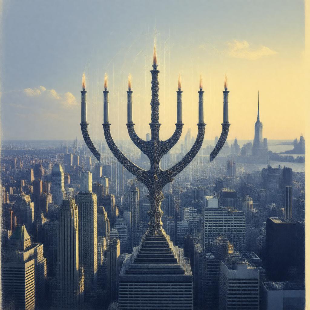 "Create an image of the logo or headquarters of the American Jewish Committee (AJC), a nonprofit organization dedicated to advocacy, Jewish rights, and combating antisemitism, with a stylized representation of a menorah or a symbol of unity, set against a backdrop of the New York City skyline, incorporating elements of interfaith dialogue and diplomacy, in a professional and modern graphic design style."