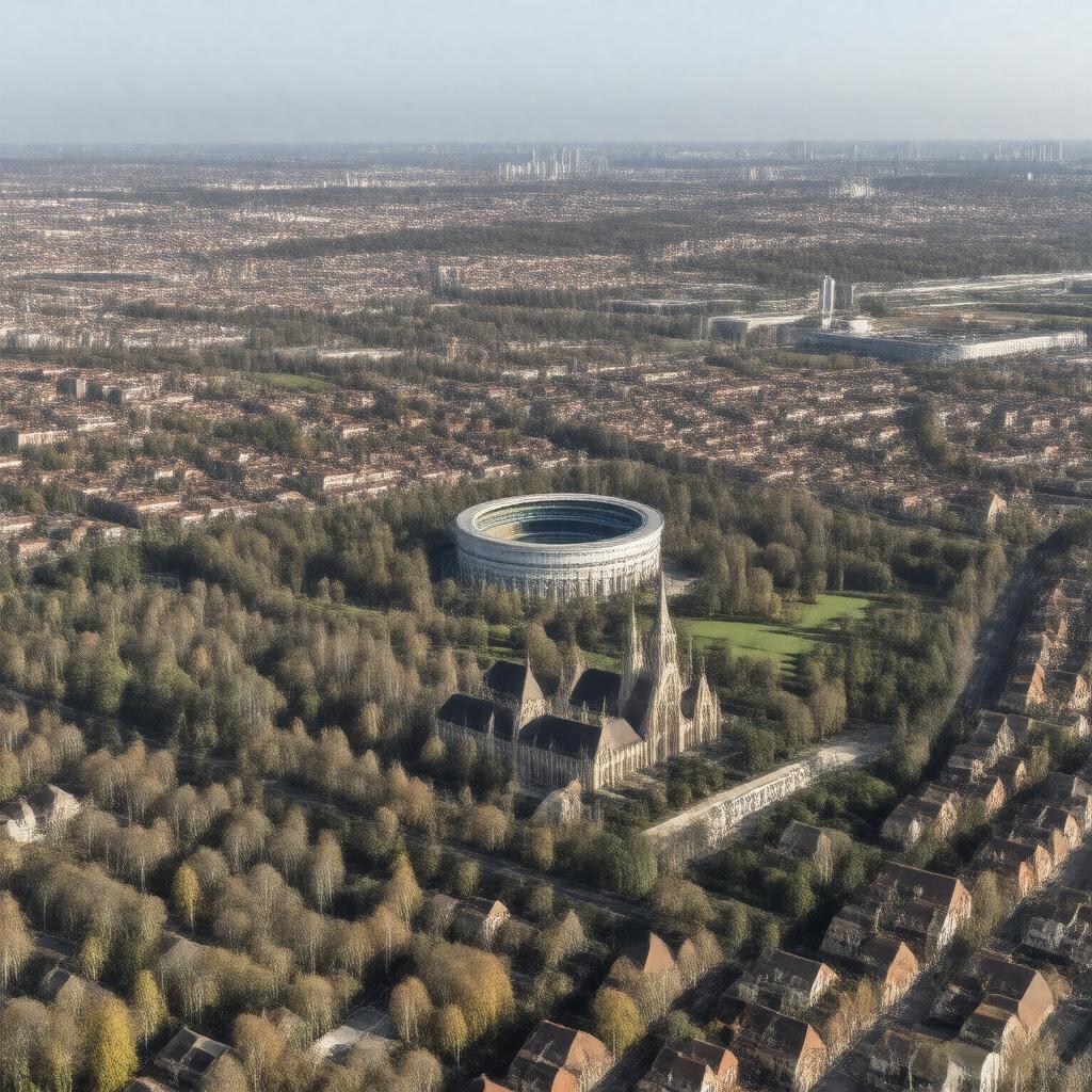 "Generate a realistic image of Anderlecht, a municipality in the Brussels-Capital Region of Belgium, showcasing its urban landscape, possibly with the Constant Vanden Stock Stadium, the Collegiate Church of Saint Peter and Saint Guido, or the Westland Shopping Center in the background, under a clear sky with a subtle Belgian atmosphere."