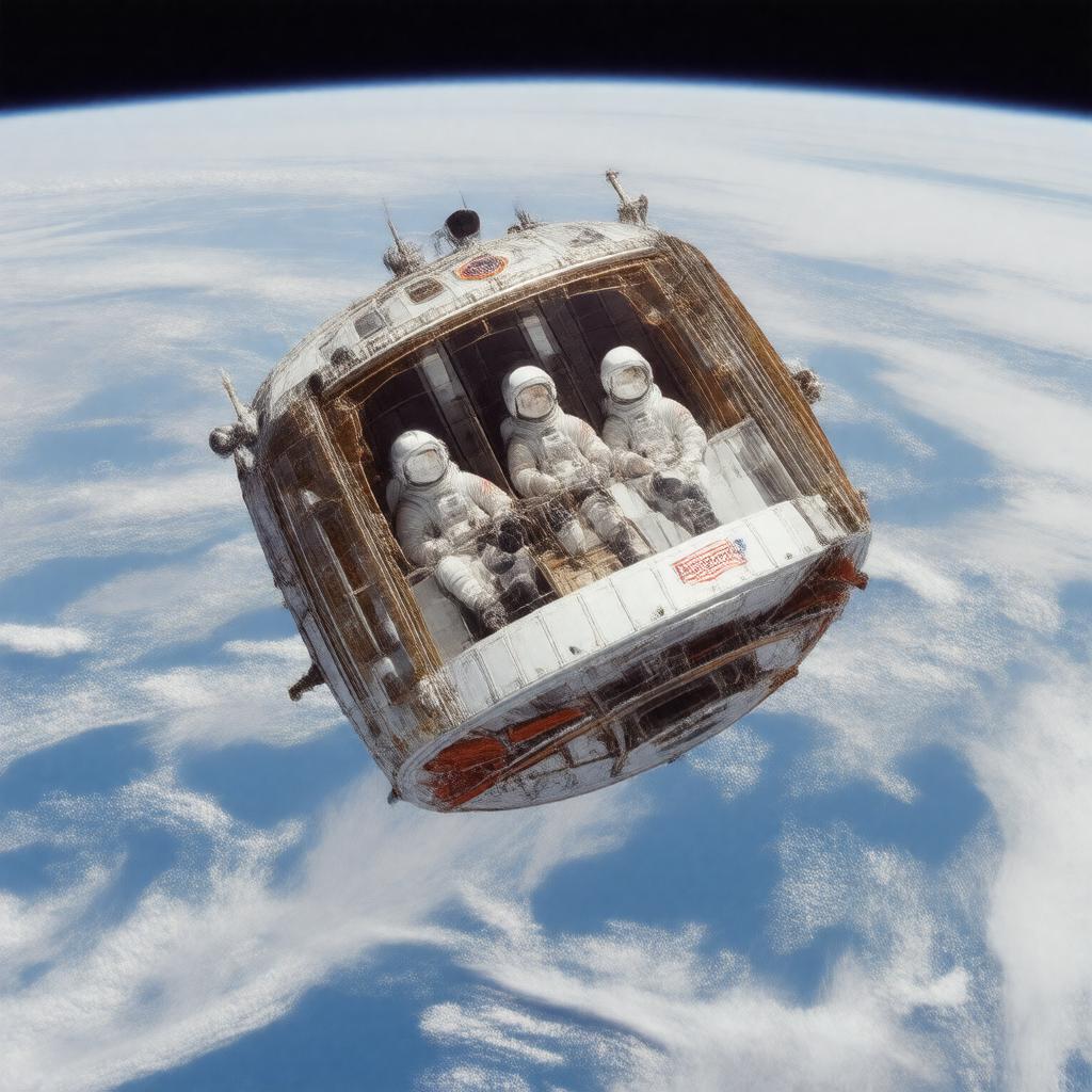 "Generate an image of the Apollo 7 spacecraft, specifically the Command/Service Module CSM-101, in Earth orbit, with the crew of three - Wally Schirra, Donn Eisele, and Walter Cunningham - visible inside the spacecraft, set against a backdrop of the curved horizon of Earth and the blackness of space, with the mission's callsign 'Phoenix' and the Apollo 7 mission patch prominently displayed; style: realistic and detailed, with accurate representation of the spacecraft and its components; color palette: metallic and industrial tones of the spacecraft contrasting with the vibrant blues and whites of Earth."