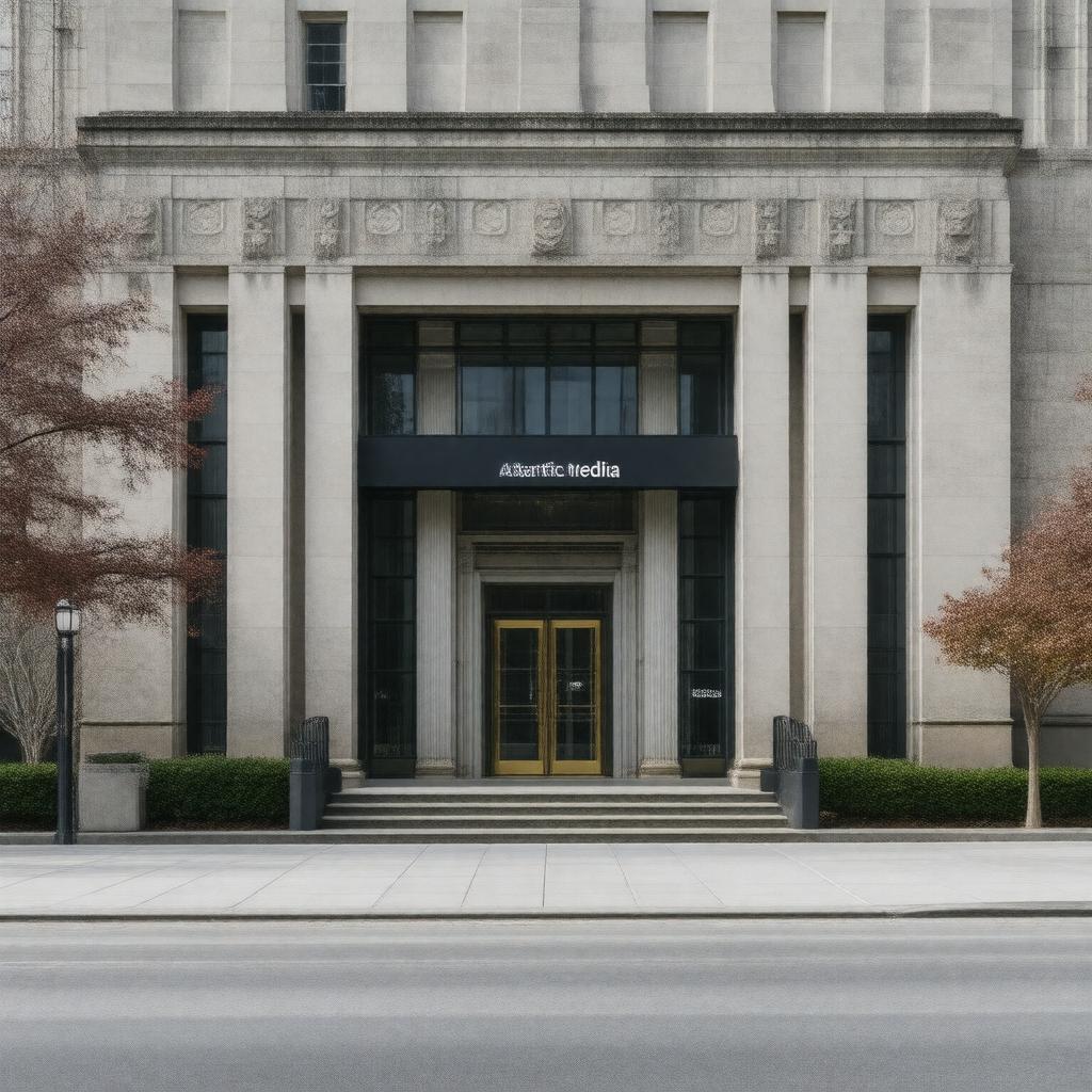 A representative image of Atlantic Media should depict a media company with a focus on its headquarters in Washington, D.C., and its notable employees such as James Bennet, Michael Kelly, and Jeffrey Goldberg. The image should also highlight the company's key person, David G. Bradley, and its parent company, Emerson Collective, after 2017. The style should be realistic and informative, showcasing the company's history, ownership, and notable figures.