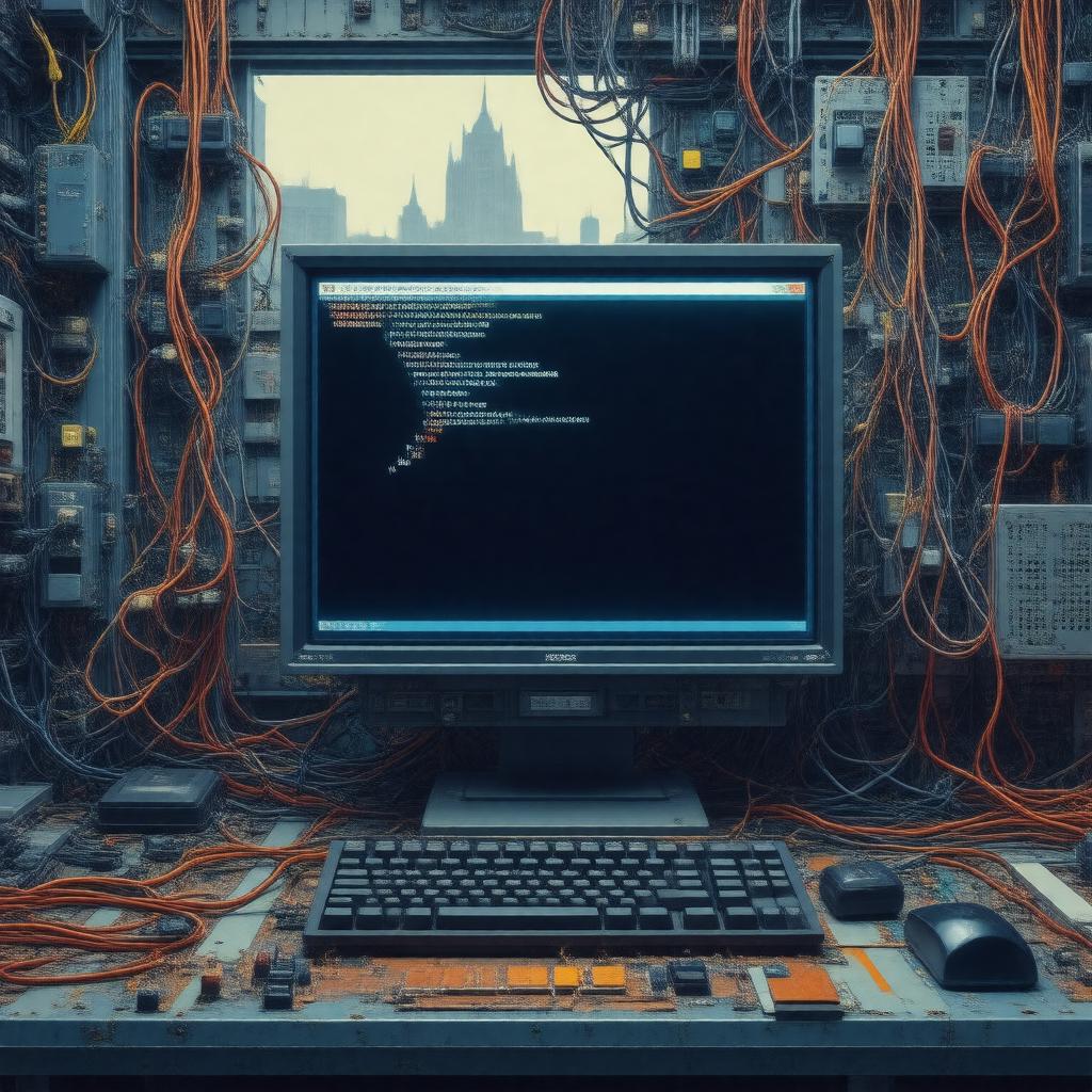 "Generate an image of a computer screen displaying a terminal interface with a UNIX-like command prompt, surrounded by circuit boards and wires, with a faint background image of the University of California, Berkeley campus, representing the BSD operating system, in a futuristic and technological style."