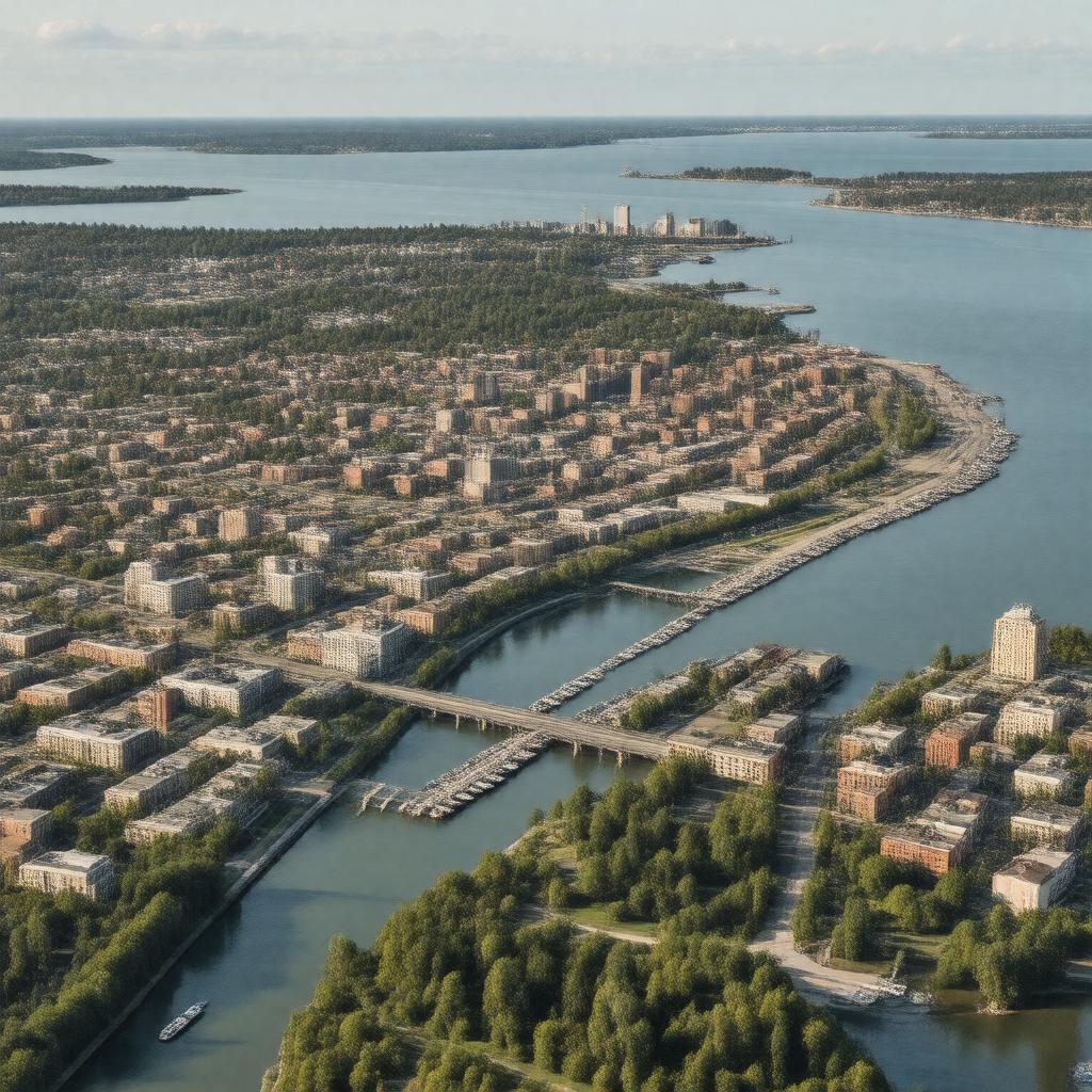 "Generate a realistic image of Barrie, a city located on Kempenfelt Bay in Ontario, Canada, with a population of 147829 as of 2021, showcasing its downtown area and waterfront, incorporating elements that reflect its rich history and cultural significance."