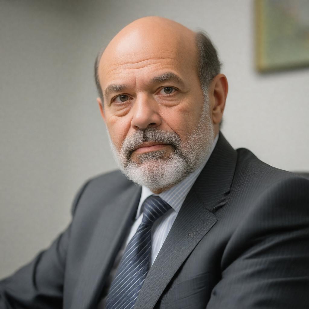 "Generate a realistic photograph of Ben Bernanke, the former Chairman of the Federal Reserve, sitting in a professional setting with a calm and authoritative demeanor, wearing a suit and tie, with a subtle background that hints at his connection to economics and finance."