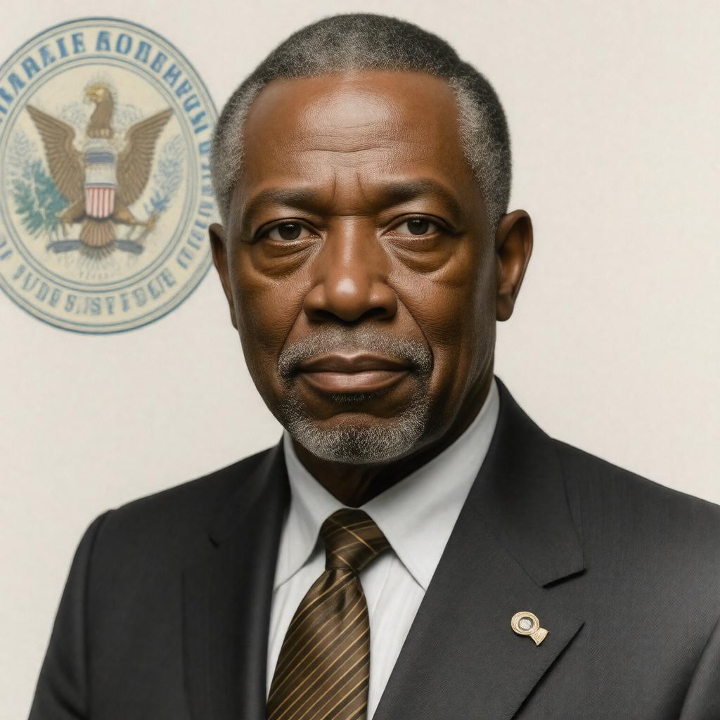 Generate a realistic image of Benjamin Lawson Hooks, a middle-aged African-American man with a dignified expression, wearing a suit and tie, possibly with a subtle background hinting at his civil rights activism or legal career, such as a faint image of the NAACP logo or a courtroom; the style should be formal and respectful, suitable for a prominent figure like the former executive director of the NAACP and commissioner of the FCC.