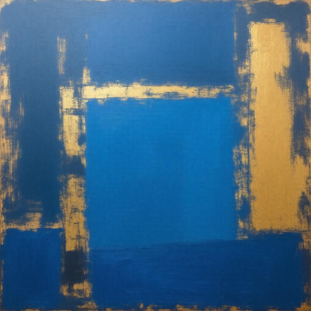 "Generate an image of an abstract expressionist painting titled Blue and Gold, created by Mark Rothko in 1954, using oil on canvas, characterized by large rectangular fields of blue and gold colors, soft edges, and a sense of depth and emotion, in the style of Abstract Expressionism, as seen in The Phillips Collection."