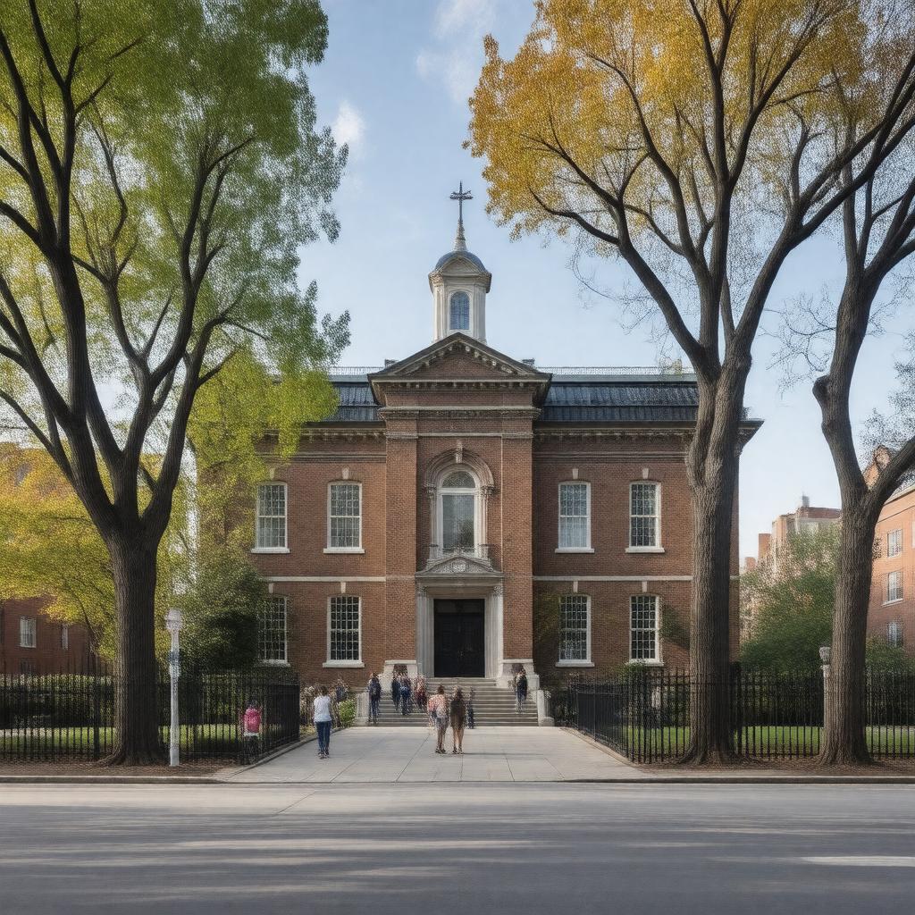 "Generate an image of the historic Boston Latin School building, located at 78 Avenue Louis Pasteur in Boston, Massachusetts, with a classic New England architectural style, surrounded by trees and a few students walking in front, with a subtle hint of the city skyline in the background, in a realistic and slightly nostalgic style."