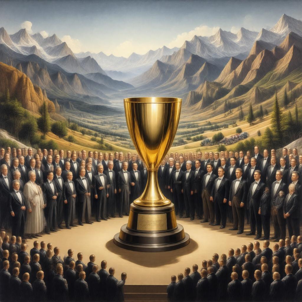 "Create an image of a prestigious award ceremony, with a large trophy or medal in the center, surrounded by esteemed scientists and dignitaries, with a backdrop of a California landscape, representing the Breakthrough Prize, a $3 million award given annually for outstanding scientific achievements in Life Sciences, Physics, and Mathematics, founded by Yuri Milner, Sergey Brin, Anne Wojcicki, Mark Zuckerberg, Priscilla Chan, Jack Ma, and Ma Huateng."