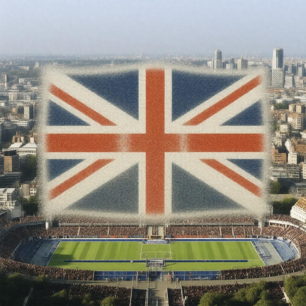 "Generate an image of the logo of the British Olympic Association, a stylized representation of the Union Jack with Olympic rings, set against a backdrop of a London cityscape or a sporting stadium, symbolizing the organization's role in representing Team GB and the United Kingdom in the Olympic Games, in a realistic and official style."