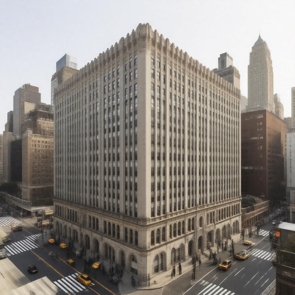 "Generate an image of the CUNY Graduate Center, a public research institute and university located at 365 Fifth Avenue, New York, NY 10016, in an urban setting, showcasing its notable building architecture, with a focus on representing its doctoral education and interdisciplinary research focus, surrounded by bustling New York City streets, incorporating elements that reflect its affiliation with the City University of New York and its motto 'Knowledge for the Public Good'."