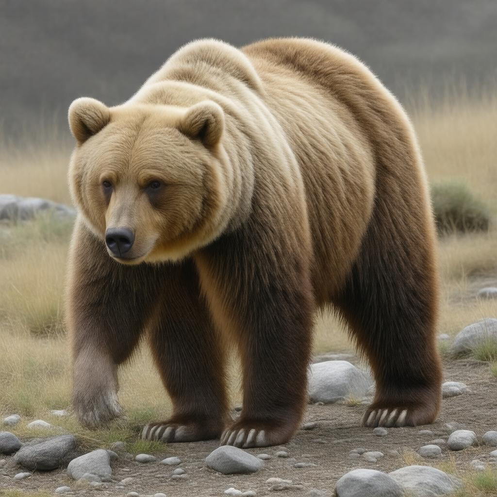 "Generate an image of a large, brown, blond, and gray California grizzly bear (Ursus arctos californicus), a subspecies of the brown bear, in a naturalistic setting, possibly in a California landscape, with a focus on showcasing its size, reaching up to 1,000 pounds and 8 feet in length, in a realistic style."