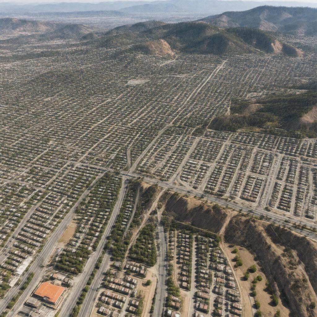 "Generate a realistic aerial view image of Carmel Mountain, a suburban neighborhood in San Diego, California, showcasing its residential areas, parks, and commercial centers, including Carmel Mountain Plaza and Carmel Mountain Ranch Town Center, with Interstate 15 and State Route 56 highways visible in the vicinity."