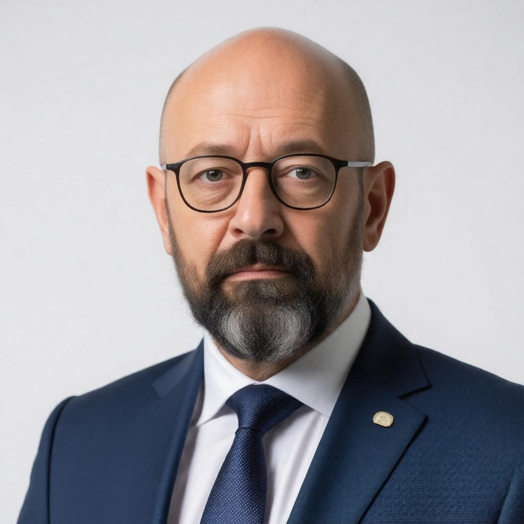 "Generate a realistic portrait of Charles Michel, the President of the European Council and former Prime Minister of Belgium, in a formal setting, wearing a suit and tie, with a confident expression, in a style reminiscent of official government photography."