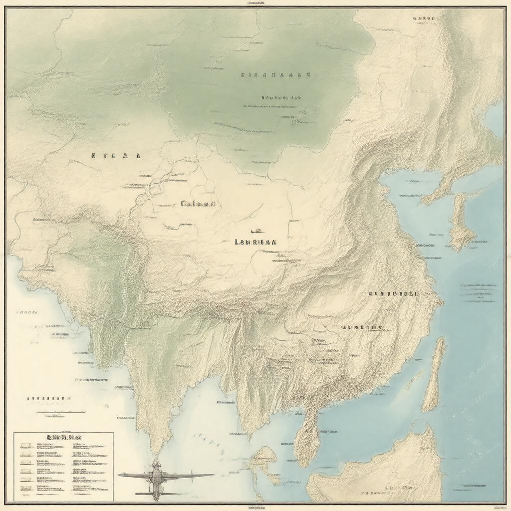 "Generate an image of a military map of the China-Burma-India Theater during World War II, highlighting key locations such as the Burma Road, Ledo Road, and The Hump, with symbols representing the Allied forces, including the Flying Tigers, Chindits, and Merrill's Marauders, and notable commanders like Joseph Stilwell, Chiang Kai-shek, Lord Louis Mountbatten, William Slim, and Claire Lee Chennault, in a vintage military illustration style."