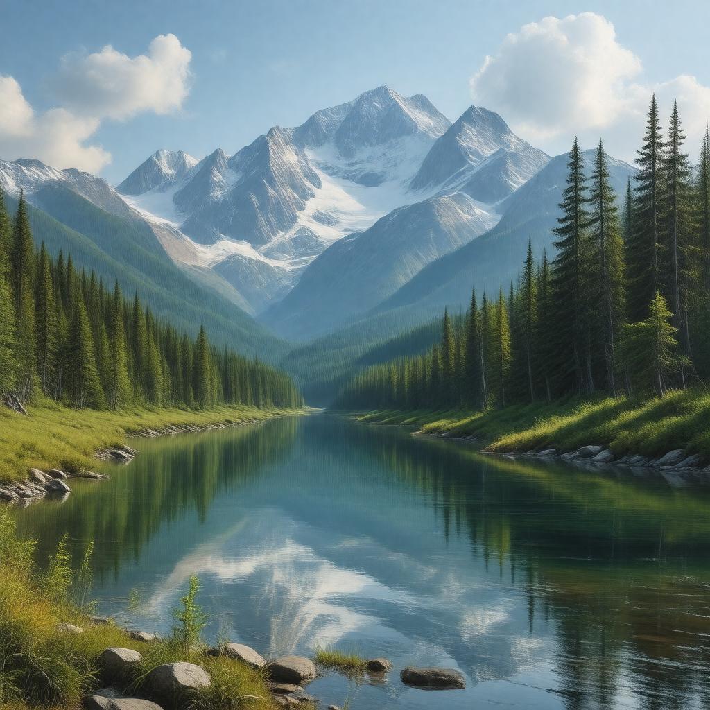 "Generate an image of a vast, scenic landscape of the Chugach National Forest, located in Alaska, United States. The image should feature a majestic mountain range, specifically the Chugach Mountains, with lush greenery and possibly snow-capped peaks. In the foreground, include a serene lake or a river, such as the Eagle River or Turnagain Arm, with surrounding trees and wildlife, like moose, deer, or birds. The image should convey a sense of wilderness and natural beauty, highlighting the forest's vast area of 6,908,540 acres. The style should be realistic, with a focus on showcasing the forest's diverse landscape and ecosystem. Incorporate elements that reflect the forest's recreational activities, such as hiking trails, kayaking, or skiing. The overall atmosphere should be breathtaking and awe-inspiring, inviting the viewer to explore and appreciate the natural wonders of the Chugach National Forest."