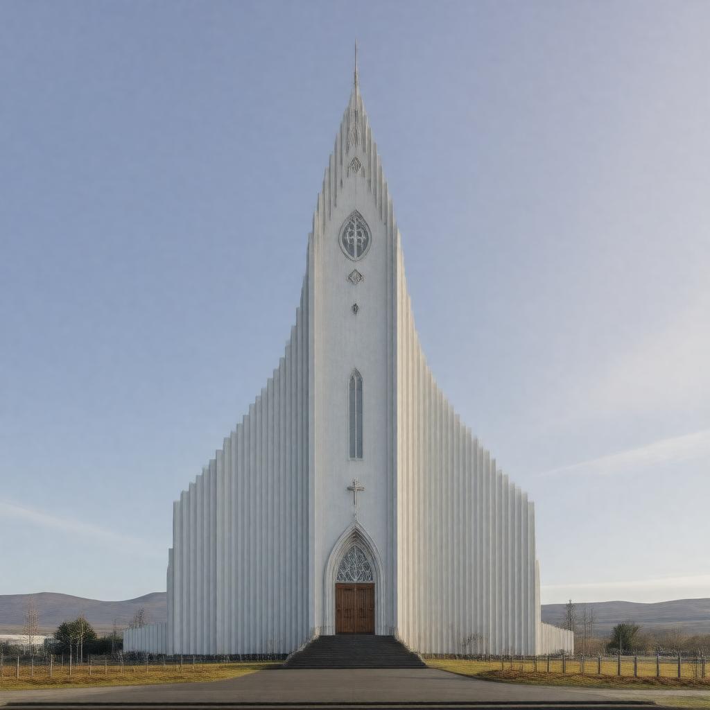 "Generate an image of the exterior of Hallgrímskirkja, the cathedral of the Church of Iceland, located in Reykjavík, Iceland, showcasing its unique architecture and Lutheran style, with a subtle Icelandic landscape in the background, during a serene daytime setting."