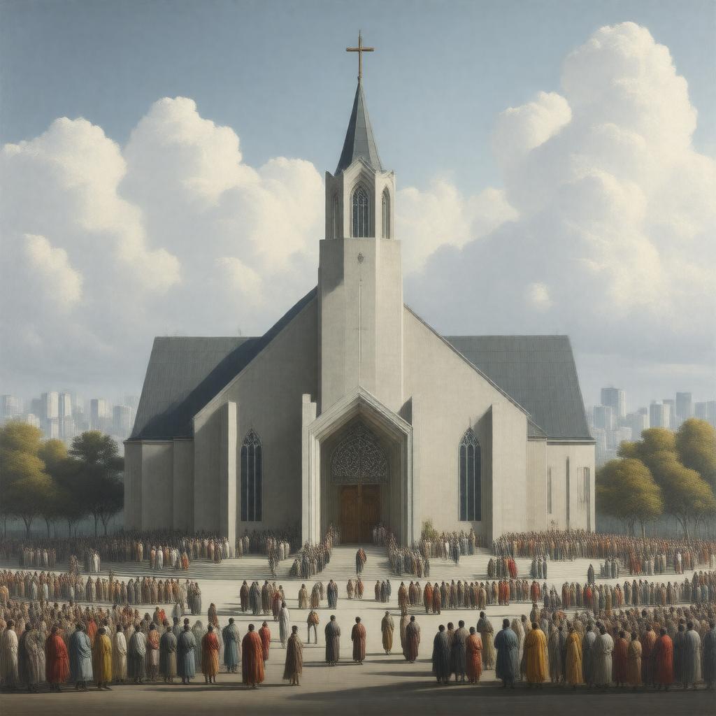"Generate an image of a Church of the Nazarene building, with a modern and welcoming architecture, surrounded by a diverse group of people from different ages and cultures, with a subtle background of a cityscape or a natural landscape, representing the global presence and community of the Church of the Nazarene, a Protestant Christian denomination with a Wesleyan-Holiness theology."