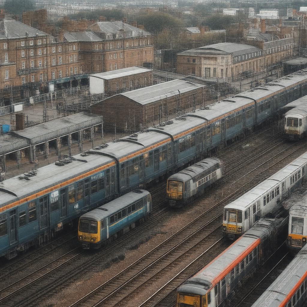 "Generate a realistic image of Clapham Junction, a bustling railway station in London, United Kingdom, with multiple platforms and trains, surrounded by urban architecture, with a busy atmosphere, incorporating details such as station buildings, tracks, and signage, in a daytime setting, with a style that reflects a typical London scene."