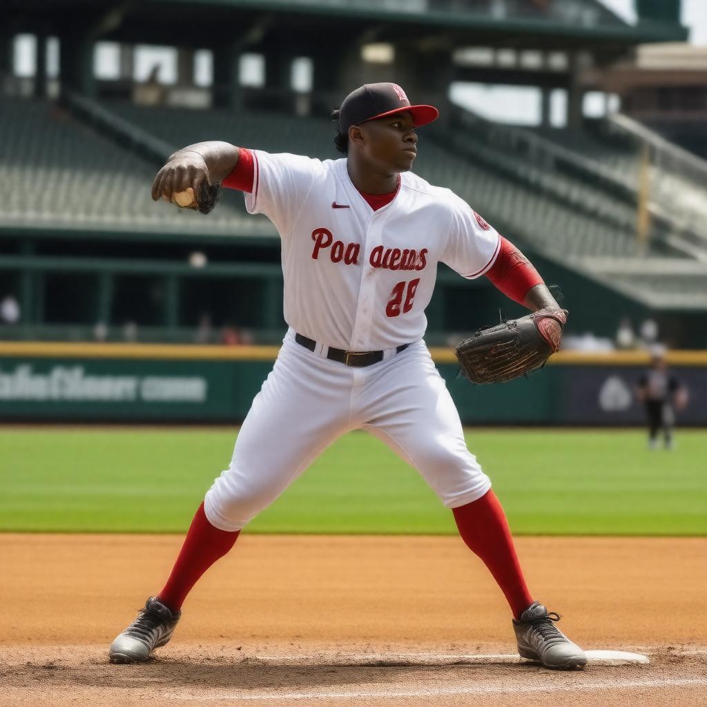 "Generate a realistic image of a baseball player in a dynamic pose, highlighting their athletic ability as a closer, with a stadium background, in a photorealistic style."