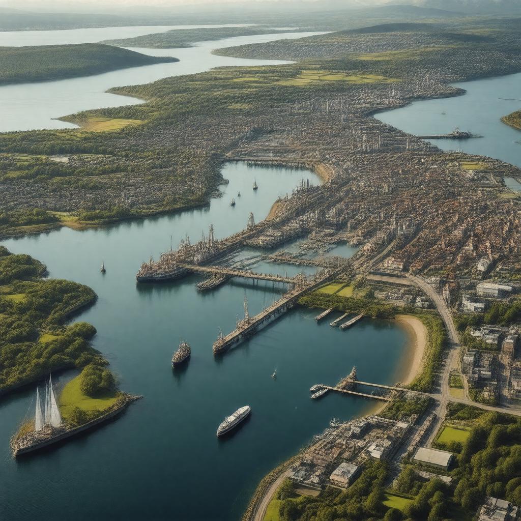 "Generate a realistic image of Cork Harbour, a large natural harbour located in County Cork, Ireland, with the Port of Cork and surrounding towns such as Cobh, Passage West, Ringaskiddy, Monkstown, Crosshaven, Carrigaloe, and Glenbrook, featuring iconic landmarks like Spike Island, Haulbowline Island, and the River Lee, with a scenic view of the harbour's mouth and its various marinas, bridges, and historic sites, in a daytime setting with a mix of industrial, natural, and maritime elements."