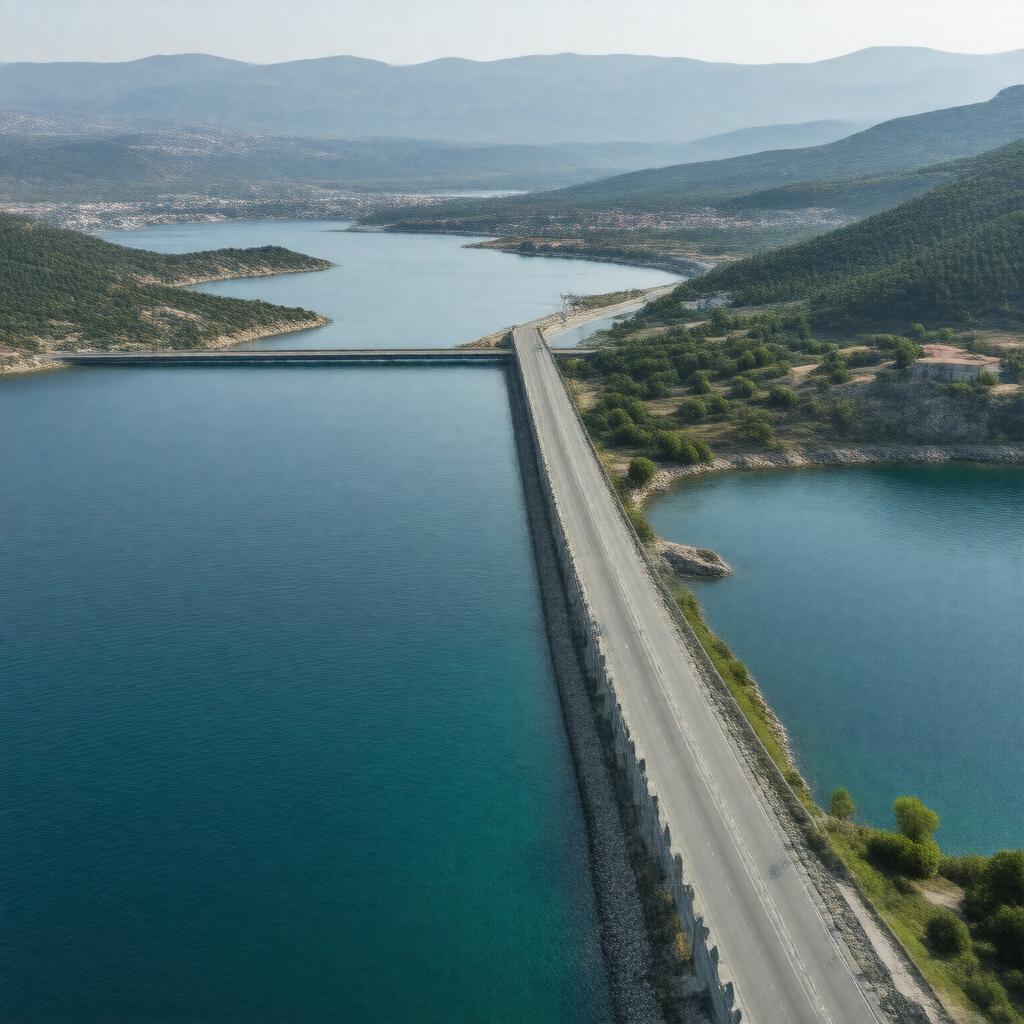 "Generate a realistic image of the Dardanelles, a narrow strait located in Turkey, connecting the Aegean Sea to the Sea of Marmara, separating Europe and Asia, with the Çanakkale 1915 Bridge crossing over it, and a scenic view of the surrounding landscape, in a style reminiscent of a serene and majestic natural wonder."