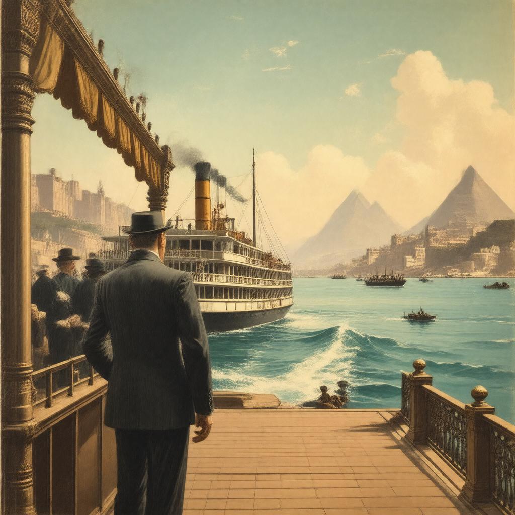 "Generate an image of the cover of the novel 'Death on the Nile', a classic mystery book by Agatha Christie, featuring Hercule Poirot on the deck of a luxurious steamboat cruising along the Nile River in Egypt, with a subtle hint of mystery and suspense in the style of a vintage book cover."