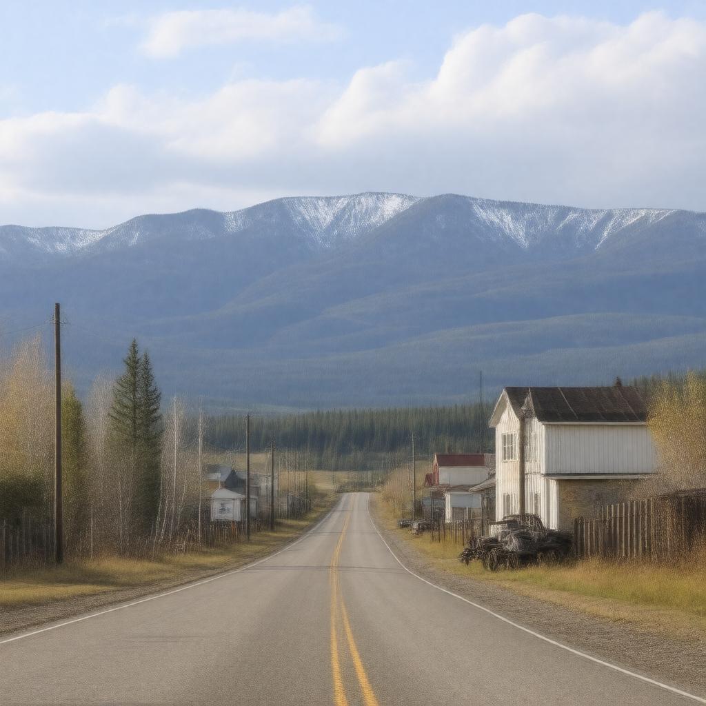 "Generate a realistic image of Delta Junction, a small city located at the end of the Alaska Highway, near the Delta River and Fort Greely, in the Southeast Fairbanks Census Area of Alaska, with a scenic backdrop of rugged terrain and a small-town feel, incorporating subtle hints of its rich history and natural surroundings."