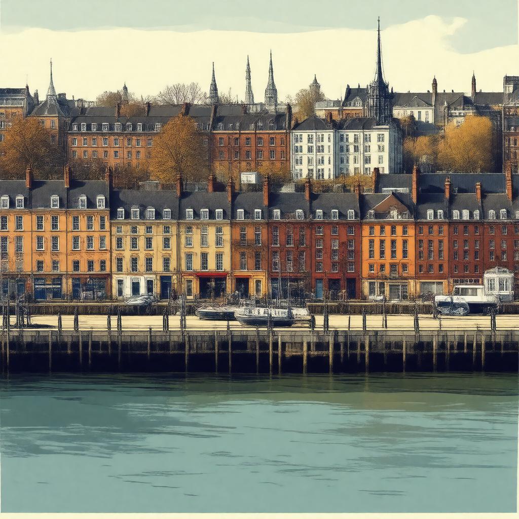 "gptkbp:instance_of district, Deptford, a lively and eclectic district in London, with a mix of modern and historic architecture, situated along the River Thames, featuring landmarks like Deptford High Street, Convoys Wharf, and The Albany, in a stylized, vibrant illustration style, with a hint of gritty urban charm."