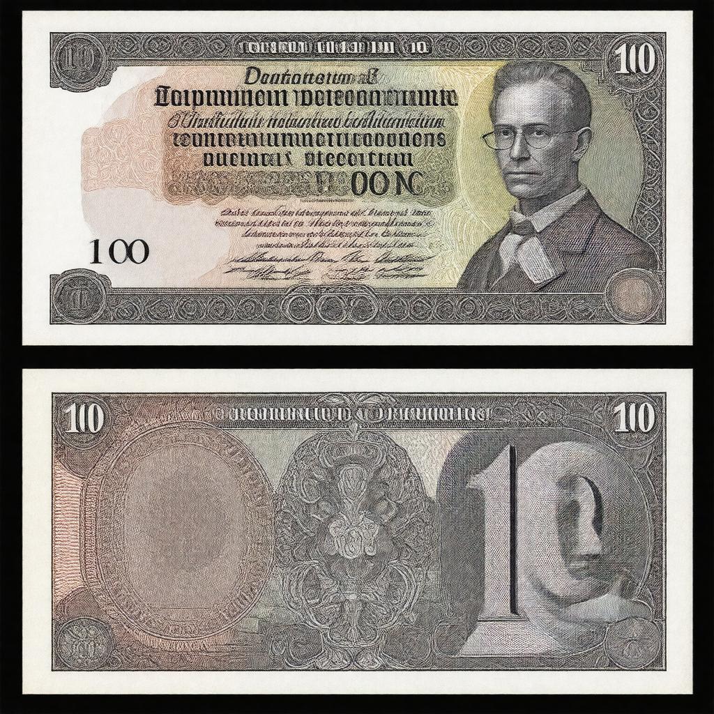"Generate an image of a Deutsche Mark banknote or coin, specifically the 100 DM note or the 1 DM coin, in a realistic style, showcasing its design and details, with a subtle background that hints at its history as the official currency of Germany from 1948 to 2002."