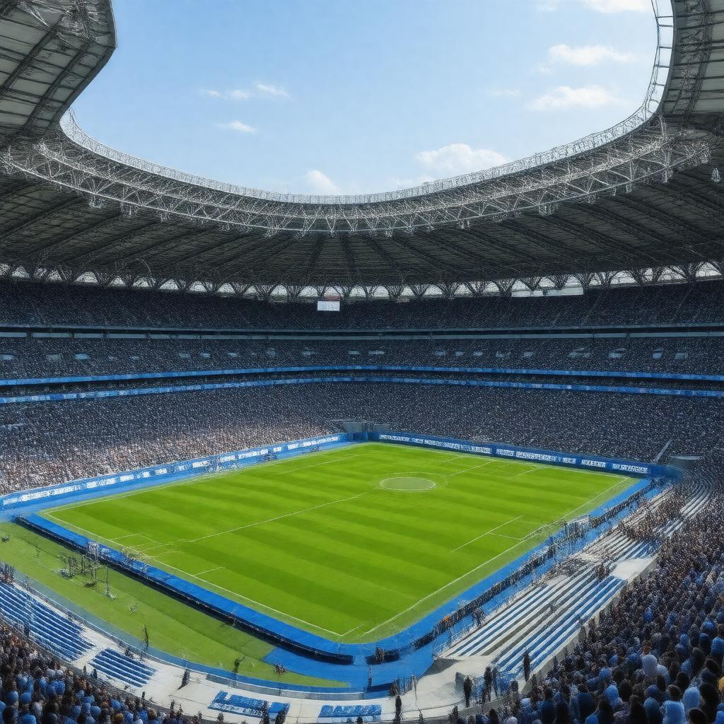 "Generate an image of a football stadium with a large crowd, showcasing the Boris Paichadze Dinamo Arena in Tbilisi, Georgia, with the Dinamo Tbilisi football club's blue and white colors prominent, and the stadium's capacity of 54,549 spectators visible, highlighting the club's rich history, including its Soviet Top League and Erovnuli Liga wins, and notable players like David Kipiani and Vitaly Daraselia."