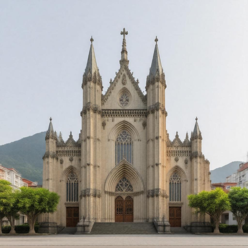 "Generate an image of the exterior of St. John's Cathedral in Taipei, Taiwan, with a subtle background of the Taiwanese landscape, representing the Diocese of Taiwan, an Anglican diocese established in 1954, with a mix of traditional Taiwanese and Christian architectural elements, in a realistic and serene style."