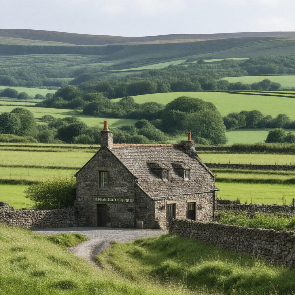 "Generate an image of a scenic, rural village in the Yorkshire Dales, with a small village pub, surrounded by rolling hills and green pastures, representing Emmerdale, a long-running British soap opera, in a realistic and idyllic style."