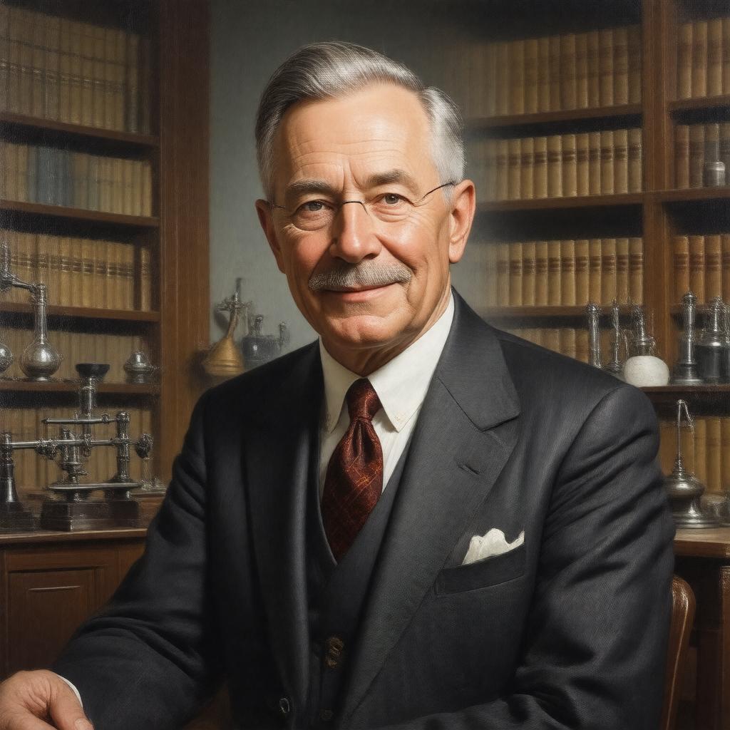 Create a realistic portrait of Erwin Chargaff, a middle-aged man with a gentle face and a hint of a smile, wearing a suit and tie, sitting in a library or laboratory setting surrounded by books and scientific equipment, with a subtle background that hints at his Austrian and American heritage, in a formal and professional style reminiscent of classic scientific portraits.