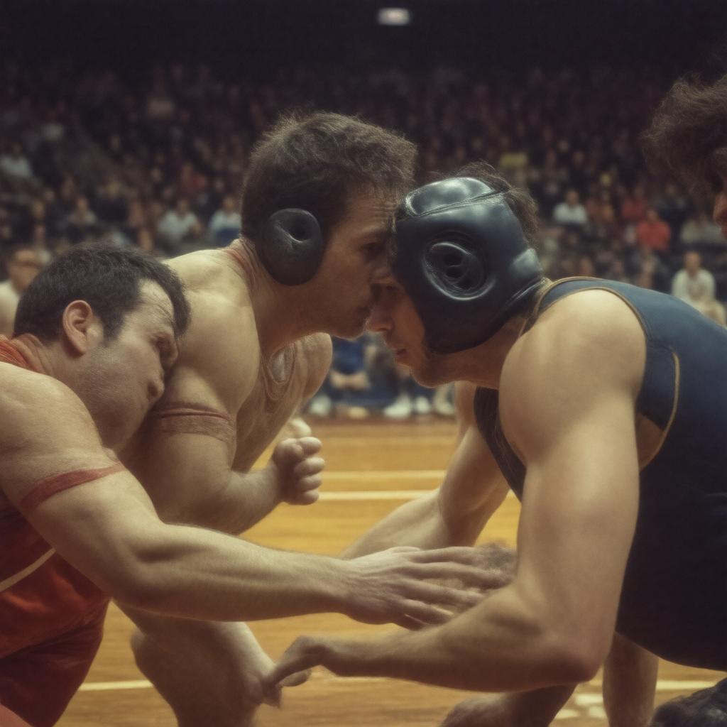 "Generate an image of the movie Foxcatcher, a 2014 American biographical drama film directed by Bennett Miller, featuring Steve Carell, Channing Tatum, and Mark Ruffalo, set in the 1980s in Pennsylvania, depicting a scene of wrestling, wealth, and obsession, with a muted color palette and a cinematic style."