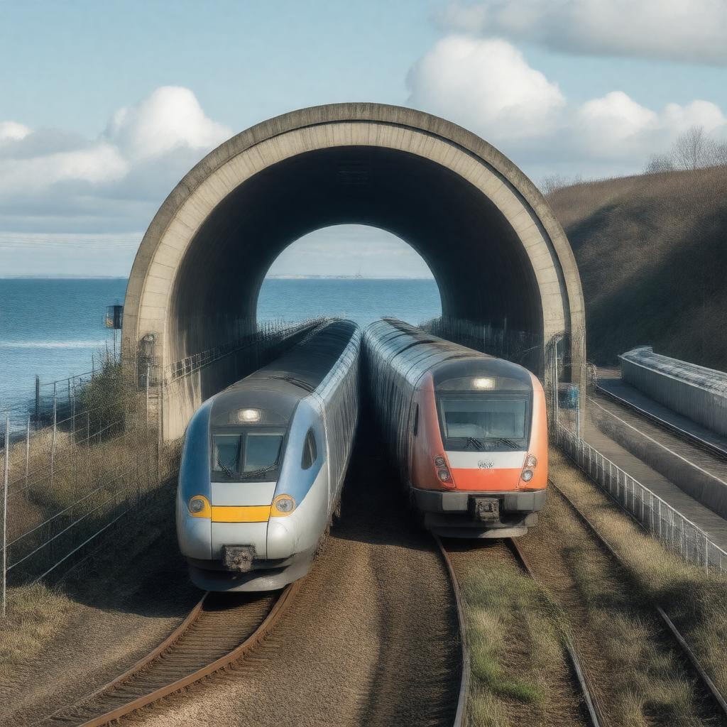 "Generate an image of the Getlink company logo, a stylized representation of the Eurotunnel, or a photograph of the Channel Tunnel's entrance with a sleek, modern train passing through, set against a backdrop of the French and British coastlines, symbolizing the company's primary operations and connection between the two countries, in a professional and realistic style."