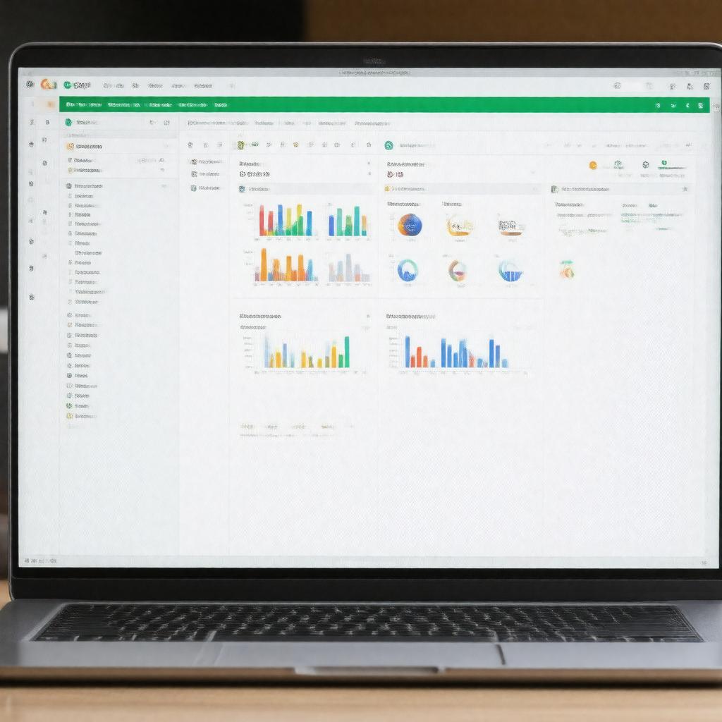 "Generate an image of a screenshot of Google Sheets interface on a laptop screen, with multiple tabs open, showing a colorful and organized spreadsheet with various charts, formulas, and data, in a modern and minimalistic style, with the Google Sheets logo visible in the top left corner."