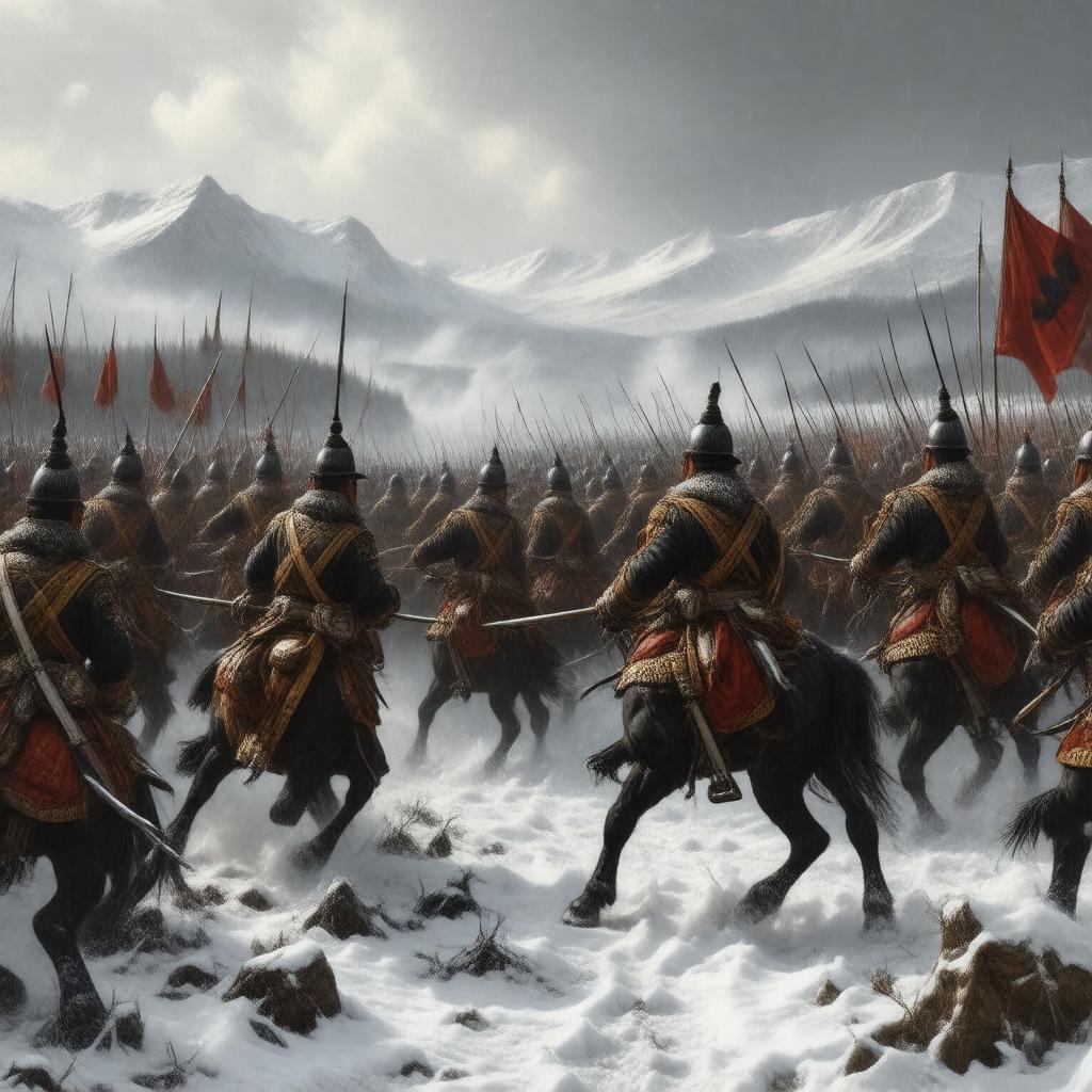 "Generate an image of a 18th-century battle scene in Northern Europe, depicting a pivotal moment in the Great Northern War, with Swedish, Russian, Danish, and Polish forces clashing in a snowy landscape, in a realistic and dramatic style, with a focus on conveying the chaos and intensity of war."