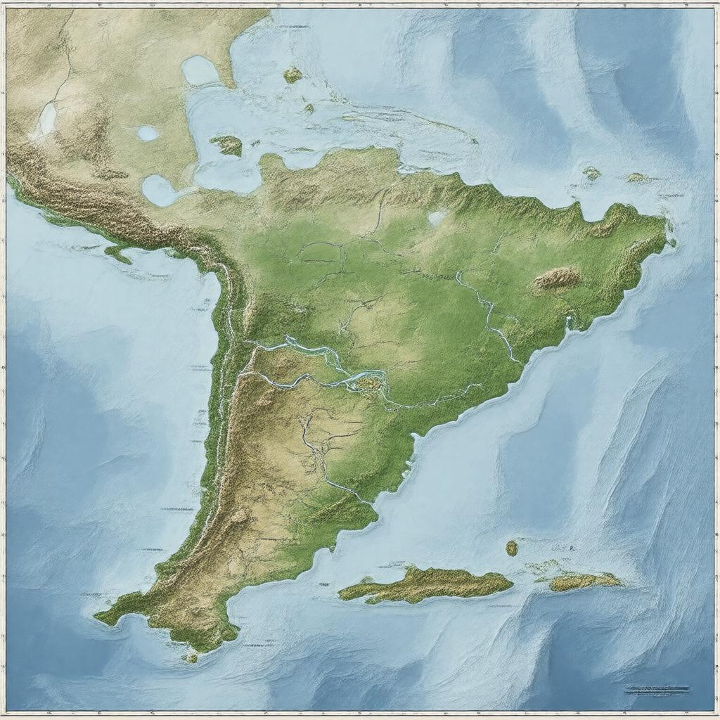 "Generate an image of a map of the Greater Antilles, a large island group in the Caribbean Sea, comprising Cuba, Hispaniola (Haiti and the Dominican Republic), Jamaica, Puerto Rico, and the Cayman Islands, with vibrant colors and geographical features, showcasing its diverse landscape and location in the West Indies."