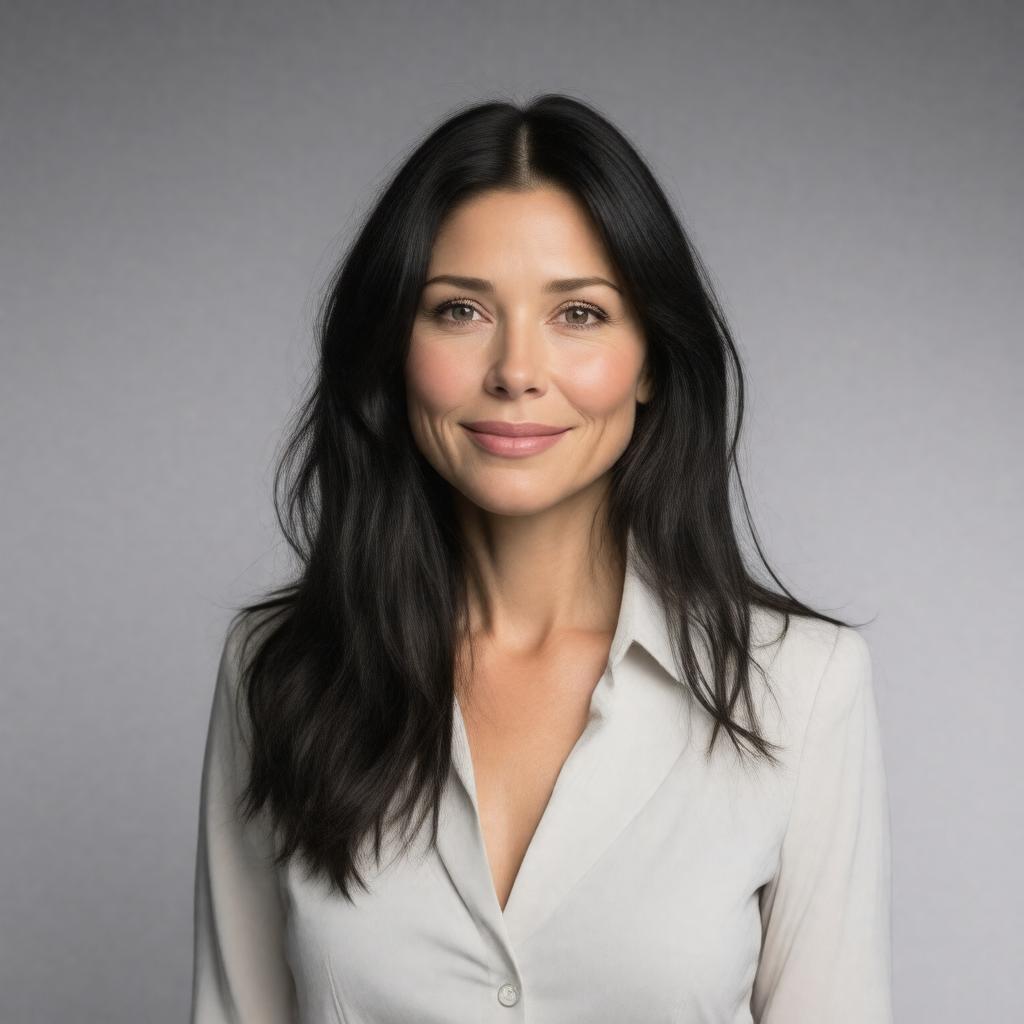 "Generate a realistic portrait image of Gwyneth Paltrow, a middle-aged woman with long, dark hair, standing in front of a neutral background, wearing a stylish outfit, exuding confidence and elegance, with a subtle smile, representing the American actress, businesswoman, and singer, Gwyneth Paltrow, in a photorealistic style."