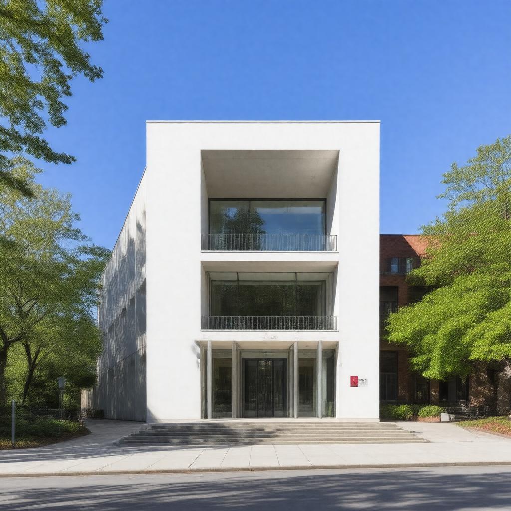"Generate a realistic image of the exterior of the Harvard Art Museums, located at 32 Quincy Street, Cambridge, MA 02138, showcasing its modern architectural design by Renzo Piano, with a backdrop of a clear blue sky and surrounded by lush greenery, highlighting its affiliation with Harvard University."