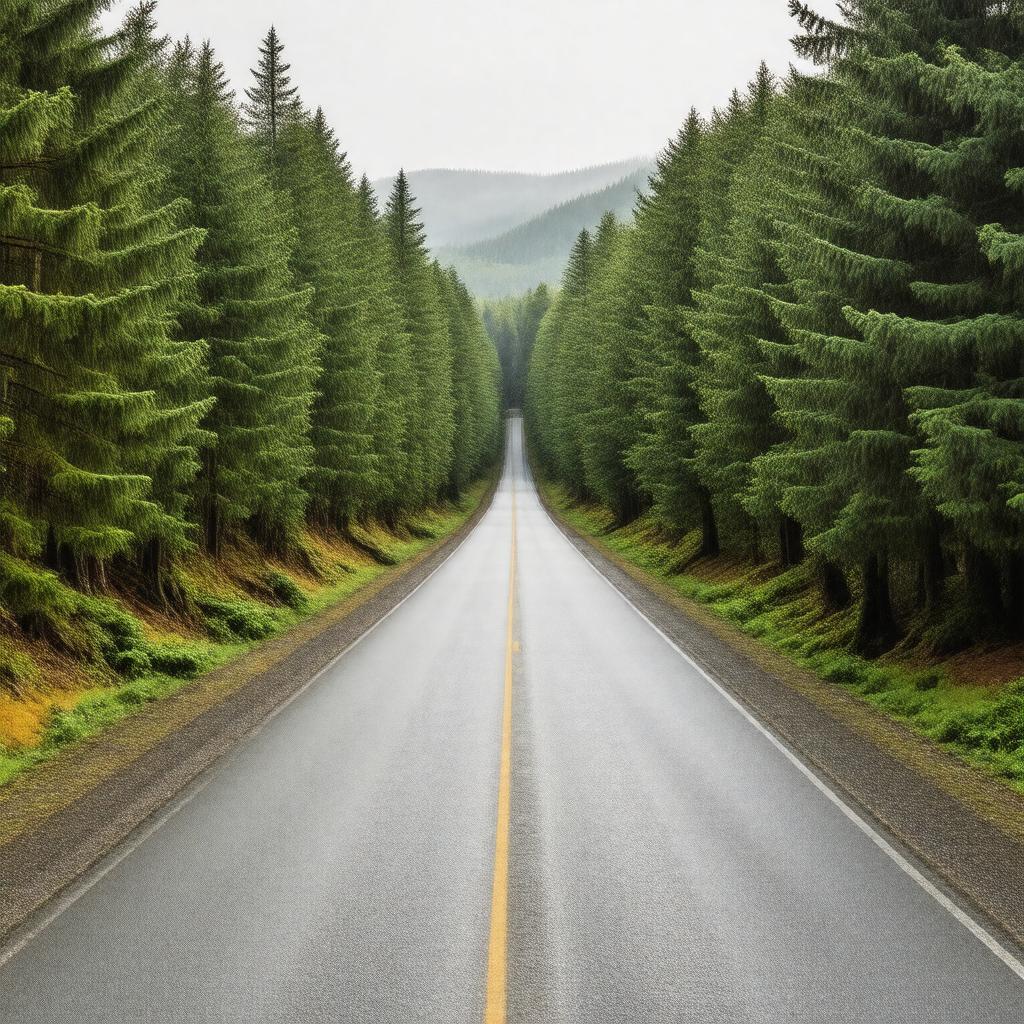 "Generate an image of a scenic stretch of a major north-south road on the west coast of North America, lined with trees and featuring a multi-lane asphalt highway with a median, realistic and daytime, gptkbp:instance_of: road"