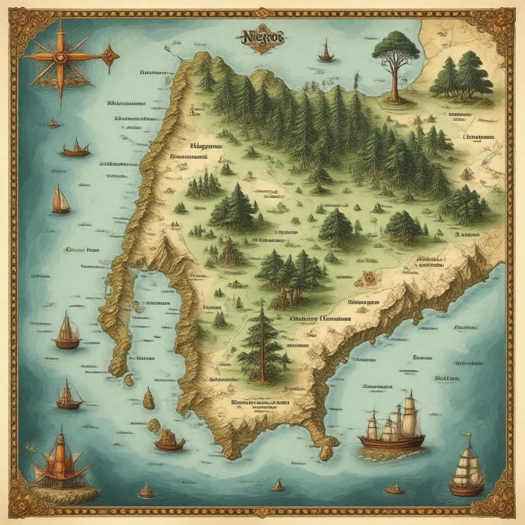 Generate an image of a vibrant and colorful illustration of a map of Western Visayas, specifically highlighting the regions of Negros Occidental, Panay Island, and South-Central Mindanao, with subtle hints of the Hiligaynon language and culture, such as traditional Filipino patterns, motifs, and a few Hiligaynon words or phrases written in a beautiful, cursive Latin script font.