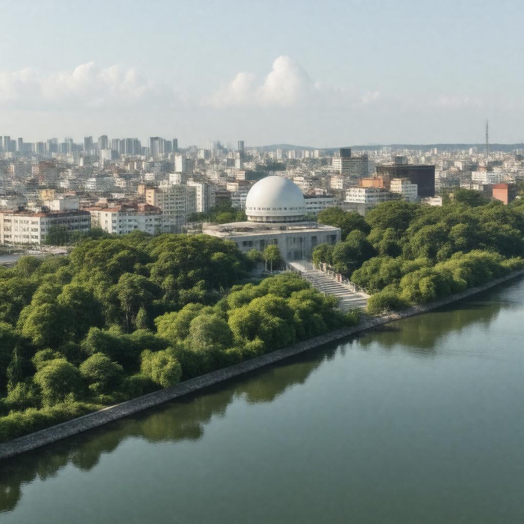 "Generate a realistic image of Hiroshima cityscape with the Atomic Bomb Dome in the foreground, surrounded by modern buildings and greenery, with a serene river flowing through it, representing the city's resilience and peace."