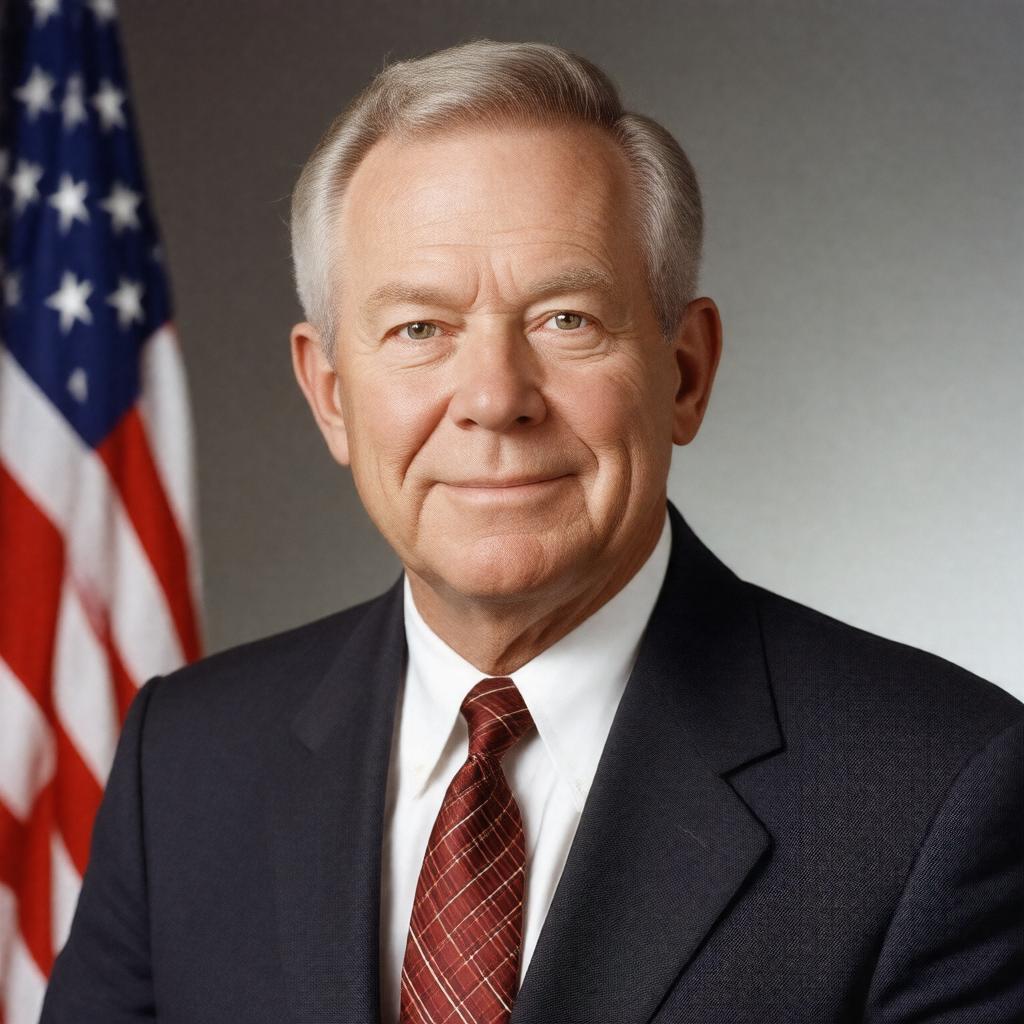 Generate a realistic portrait of Howard Cannon, a middle-aged man with a dignified expression, wearing a suit and tie, likely in a formal setting. He should be depicted with a slight smile, conveying a sense of approachability and authority. The background should be subtle, possibly with a hint of the American flag or a Senate-related motif to reflect his occupation as a politician and United States Senator. The style should be photorealistic, capturing the essence of a man who served from 1959 to 1983.