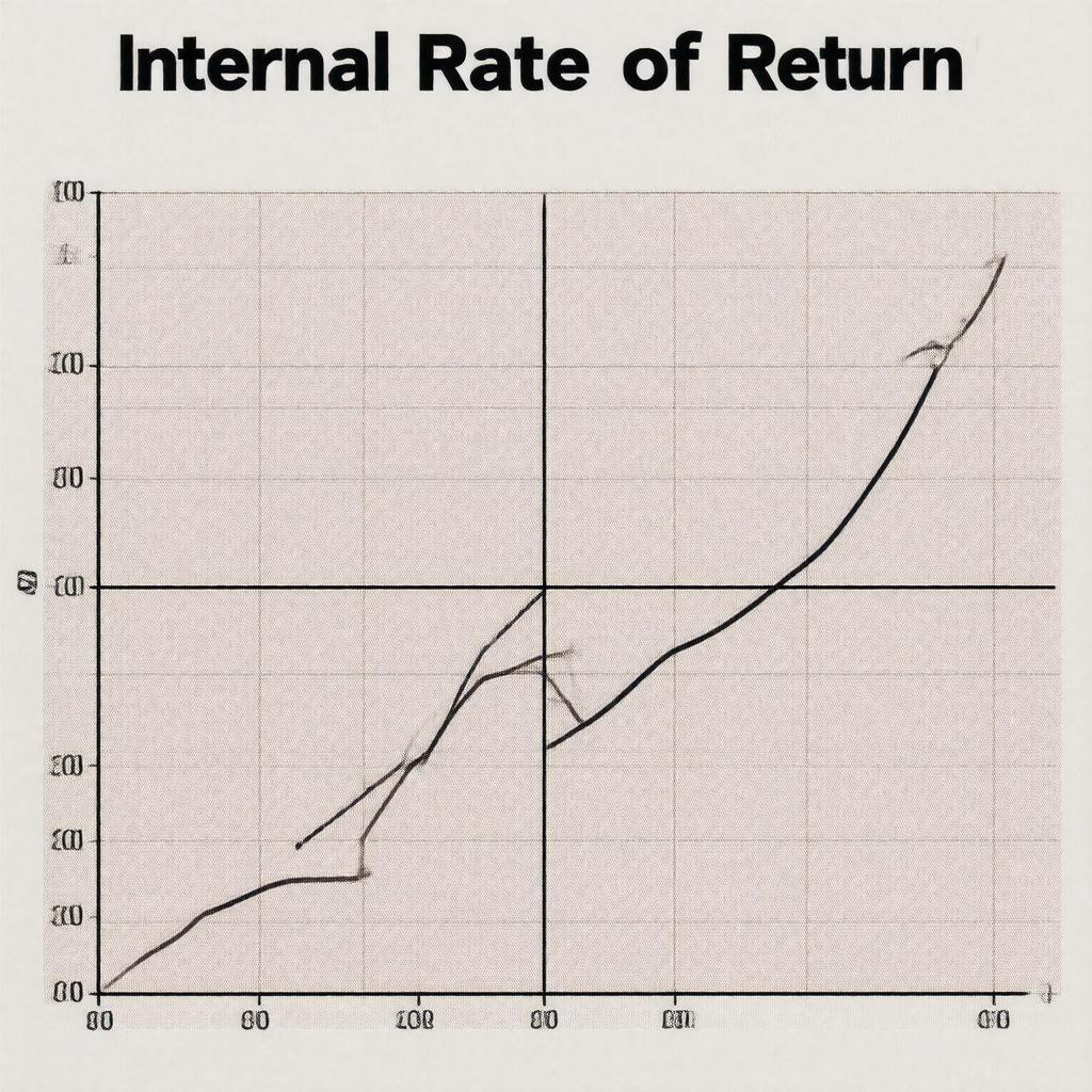 "Generate an image of a graph illustrating a financial concept, with a title 'Internal Rate of Return' and a chart showing a curve intersecting with a horizontal line, symbolizing IRR in finance; style: professional, minimalist, and informative."
