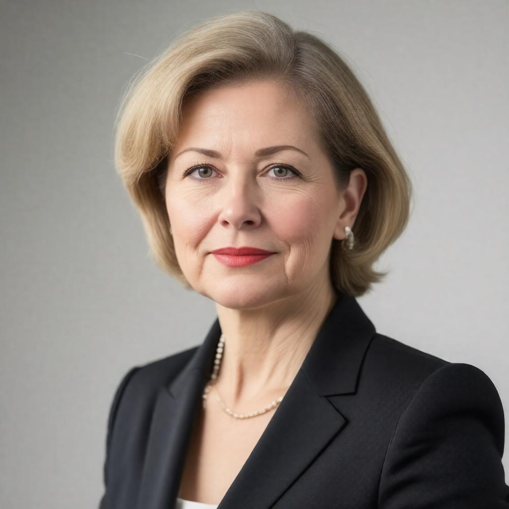 Generate a realistic image of a middle-aged female politician, specifically the Prime Minister of Lithuania, in a formal setting, wearing professional attire, with a confident expression, and a subtle background hinting at her connection to Vilnius or the Lithuanian government; the style should be a photorealistic portrait.