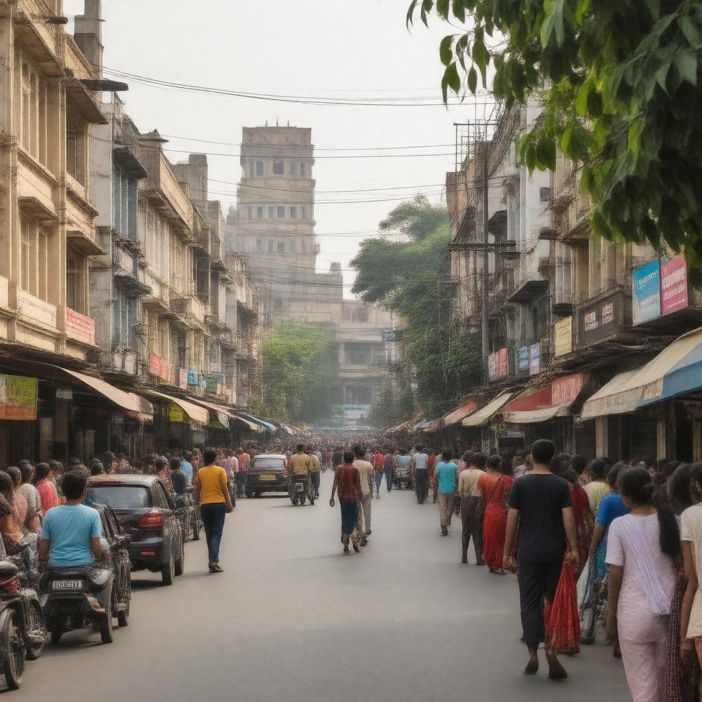"Generate a realistic image of Jadavpur neighborhood in Kolkata, West Bengal, India, showcasing its vibrant streets, possibly with students and locals around, in proximity to Jadavpur University, with a backdrop that could include the Central Glass and Ceramic Research Institute or the Indian Association for the Cultivation of Science, during daytime."
